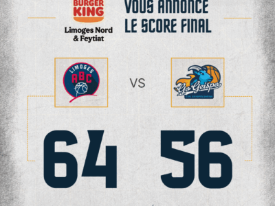 Victoi-rrreeeee 03 Nov 2025Marketing Burger King, Limoges Nord et Feytiat, vous présente le score du match ! Énorme victoire du Limoges ABC, 64 à 56, face... Lire plus0