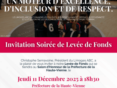 Levée de fonds limoges ABC 19 Nov 2025Marketing ✨ Le Limoges ABC lance une 𝗚𝗥𝗔𝗡𝗗𝗘 𝗟𝗘𝗩𝗘𝗘 𝗗𝗘 𝗙𝗢𝗡𝗗𝗦 ! ✨ 📅 Jeudi 11 décembre 2025 – 18h30 📍 Préfecture de... Lire plus0