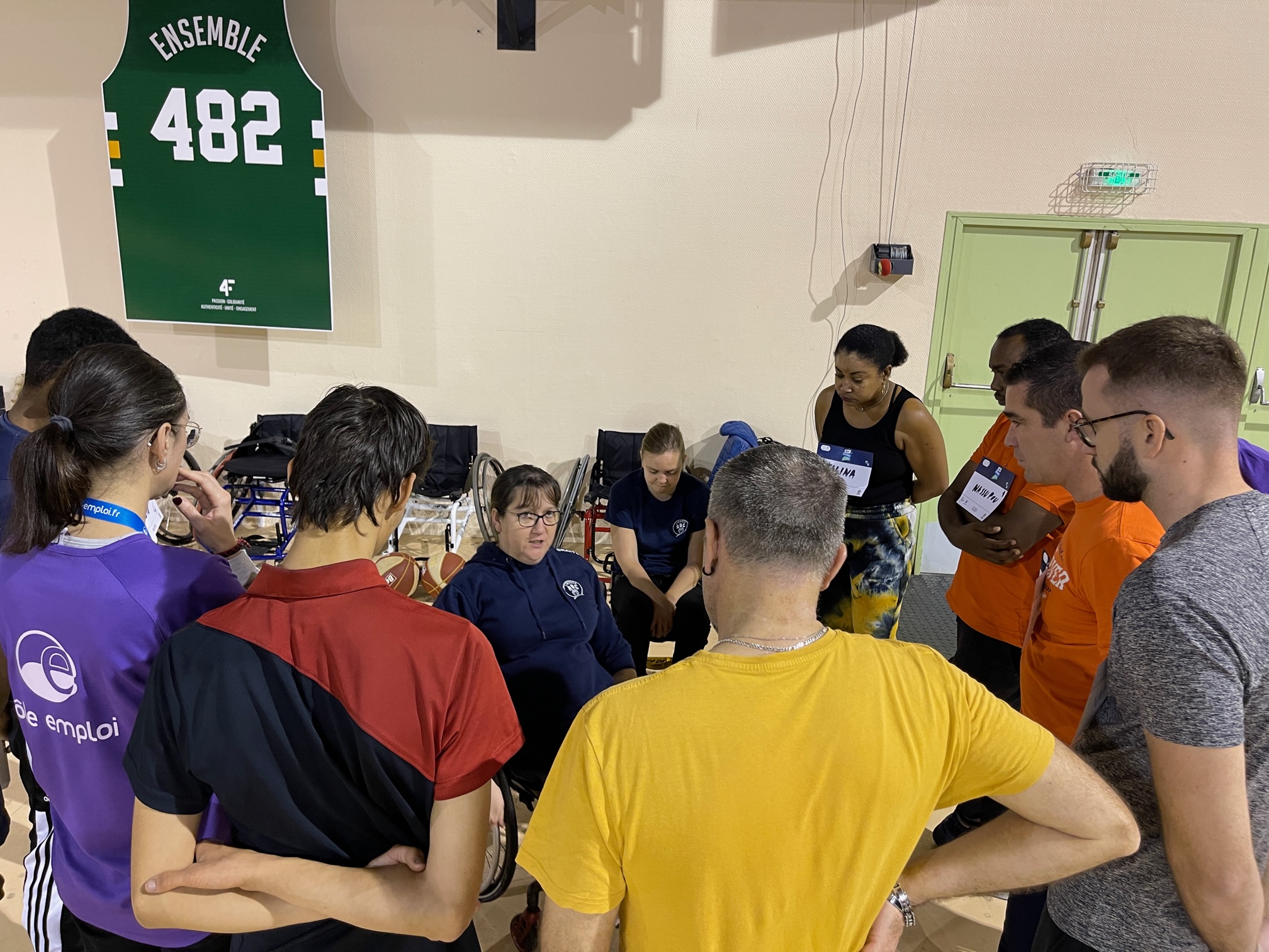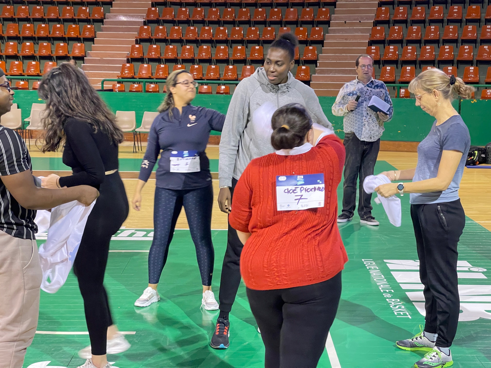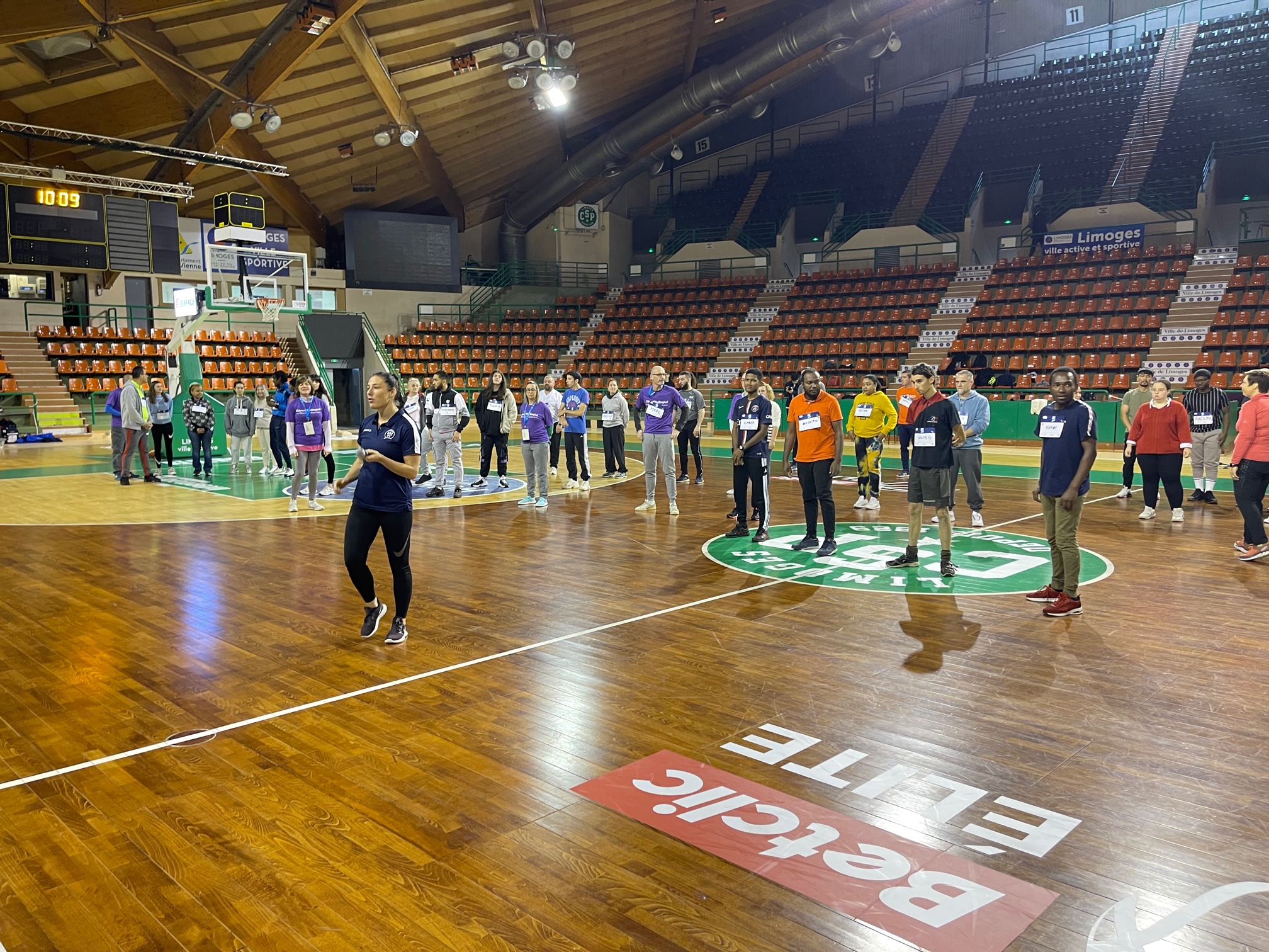 Le Limoges ABC et le Limoges CSP SASP ont co organisé ce vendredi un Job Dating très original, “Du Stade vers l’Emploi” dans l’enceinte du Palais des Sports de Beaublanc. Proposé conjointement par la Fédération Française de BasketBall et par Pôle Emploi, dans le cadre des initiatives autour de Paris 2024, l’évènement a réuni une soixantaine de demandeurs d’emploi qui ont rencontré une douzaine d’employeurs. Mais les rencontres opérationnelles qui se sont déroulées l’après-midi ont été précédé par une mise en bouche très originale et appréciée sous la forme d’une phase d’échauffement en musique avec Lise Leroy puis de sept ateliers (*) le matin de 10h à 12h sur le parquet de Beaublanc. Animés par les coaches du Limoges ABC, ces Ateliers ont été une belle réussite et ont permis à chacun de se connaitre dans des situations atypiques, sur un fauteuil de handibasket ou lors d’un parcours de drible.
