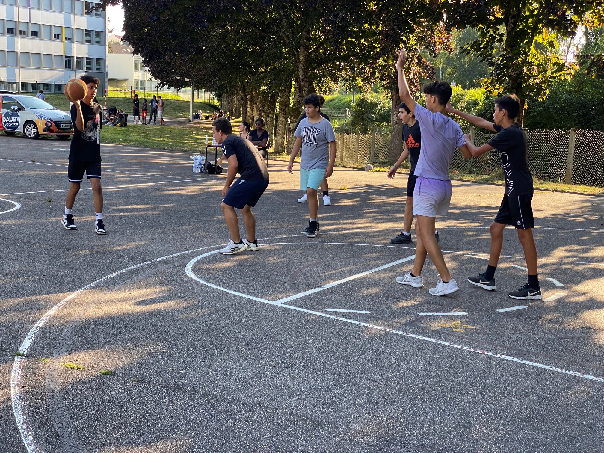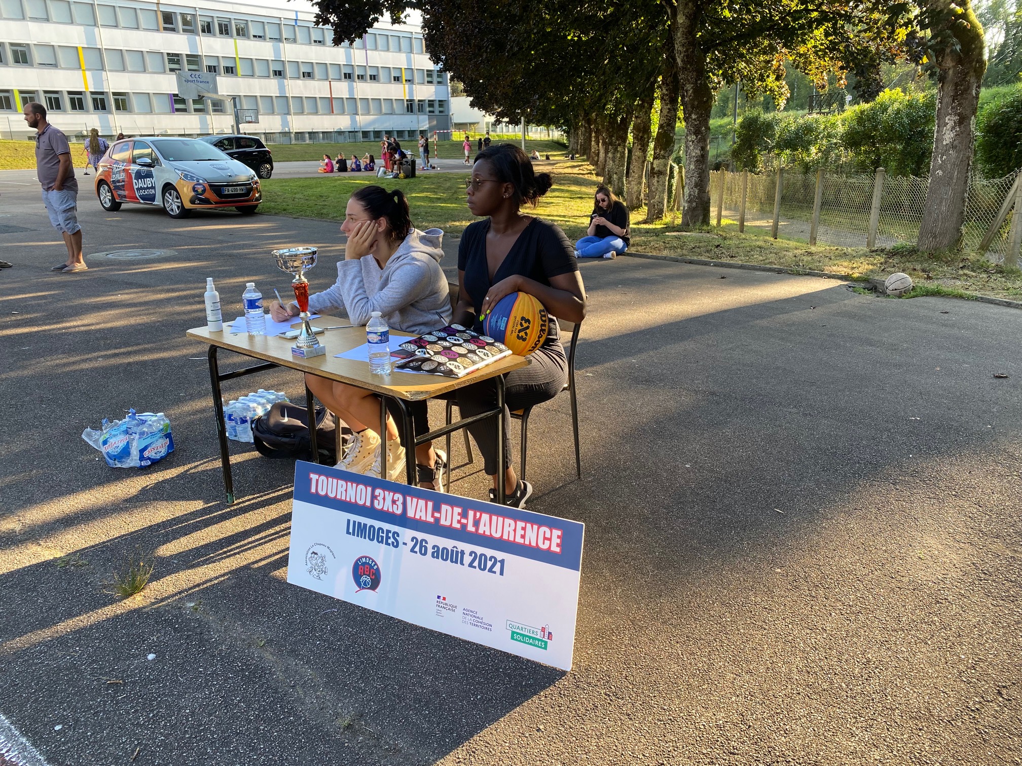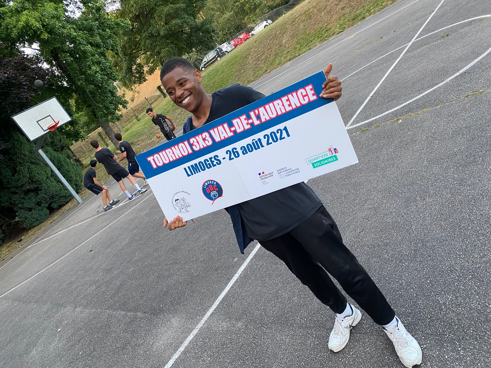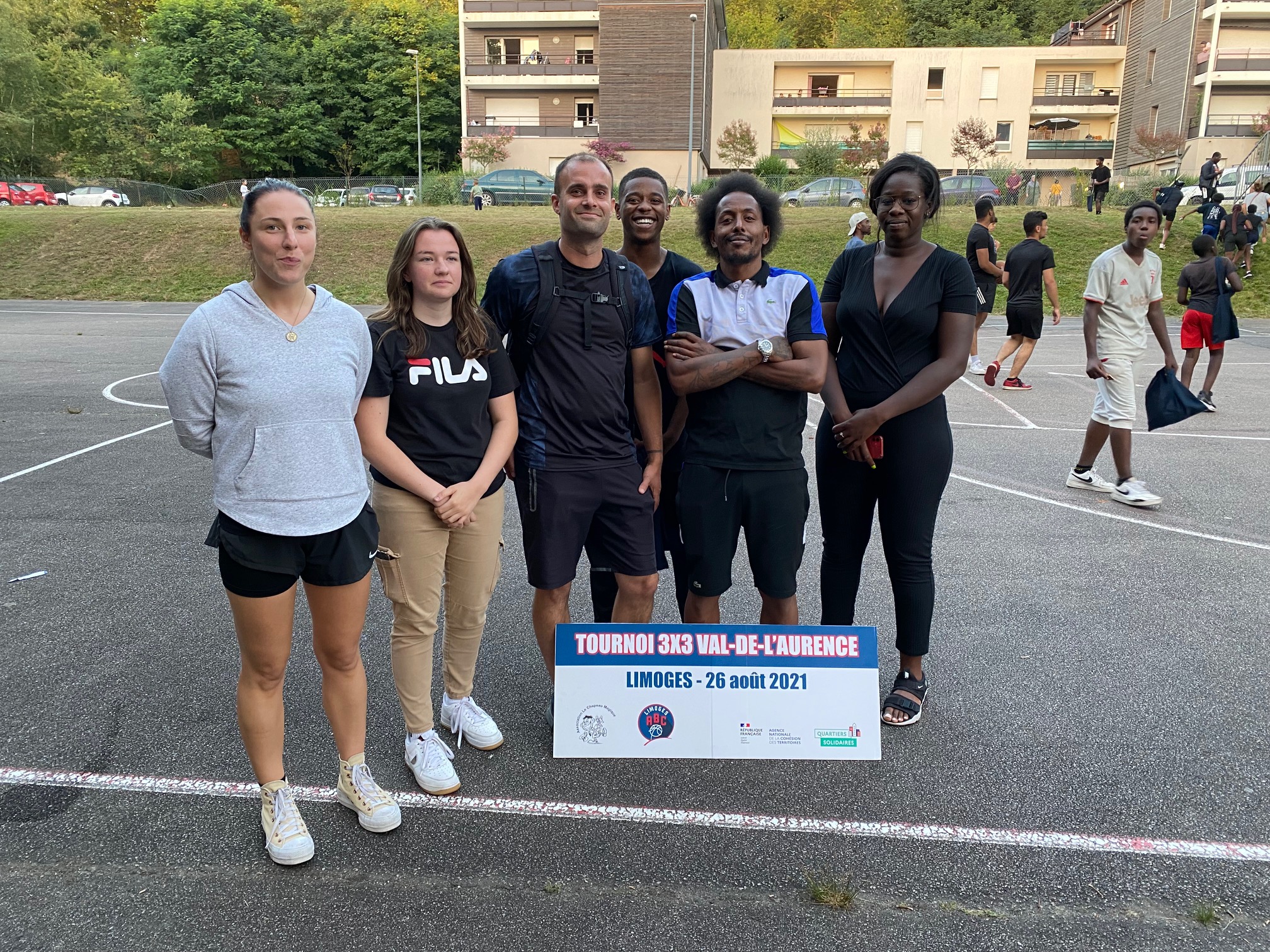 Ce jeudi 26 août, les terrains de Calmette, au Val-de-L’Aurence ont accueilli un beau petit Tournoi 3×3 dans un environnement très sympathique et convivial, musique, basket, défis, jeux, concours. Six équipes de garçons et trois équipes de filles ont répondu présentes à l’invitation du Centre Social “Le Chapeau Magique” et du Limoges ABC, en co-organisation, dans le cadre des opérations de Quartiers d’Eté, Quartiers Solidaires et des animations de rue à L’Aurence. Au total, une trentaine de jeunes de 10 à 16 ans, avec cinq équipes issues de l’Aurence (garçons), une équipe des Portes-Ferrées (filles), deux équipes du Limoges ABC (filles), une équipe constituée pour le Tournoi (garçons).