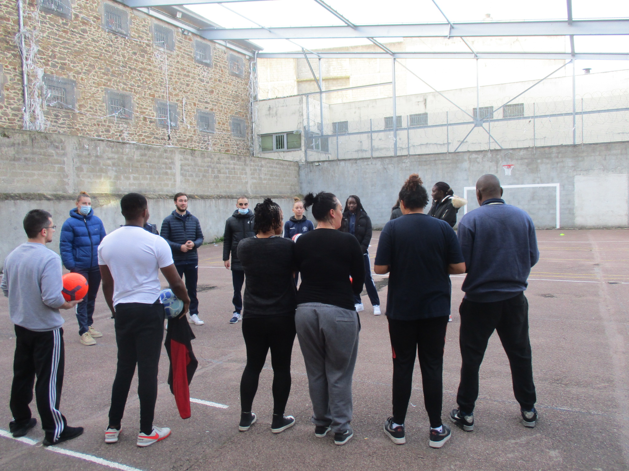 L’ambiance et le ressenti : ” Cette animation s’est très bien passée, les détenus étaient à l’écoute et se sont donnés à fond dans tous les jeux, exercices et matchs qu’on a fait. ” (Hermance) // ” Ca s’est très bien passé, l’ambiance était bonne et les prisonniers joueurs. ” (Romain) // ” Tout s’est très bien déroulé, les détenus étaient tous à l’écoute et avec de l’envie, tout le monde a joué le jeu. ” (Caroline)
