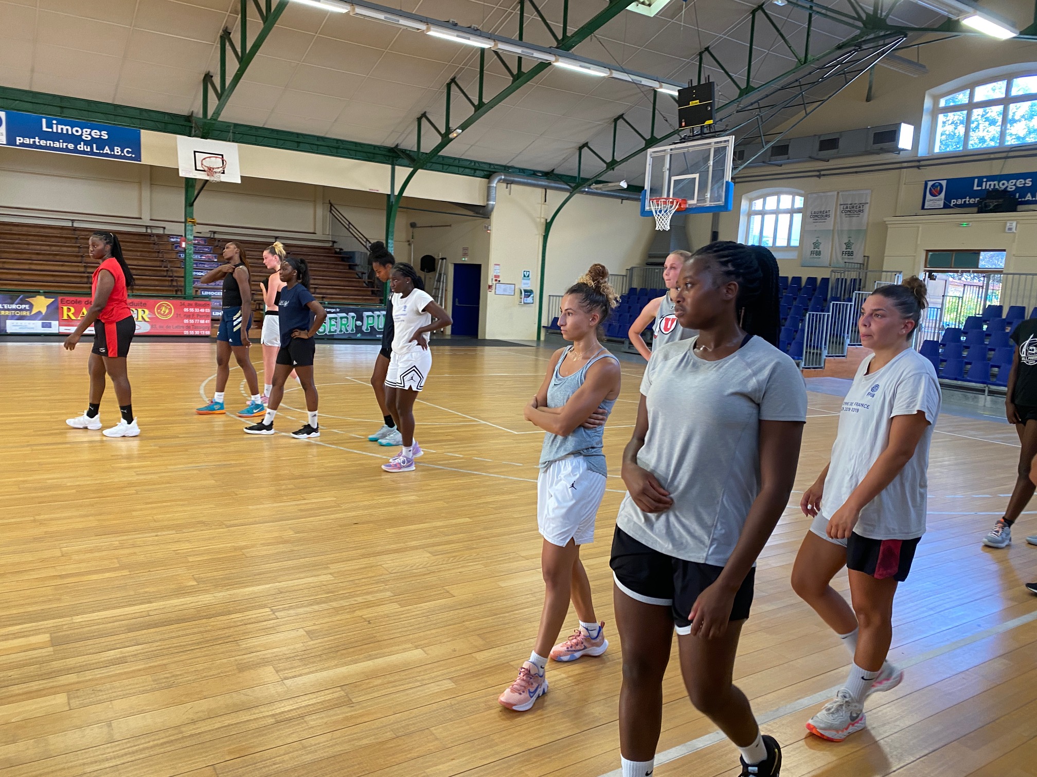 Jours de reprise en NF1 ! Après les tests médicaux de lundi et mardi, le premier entraînement était hier soir mercredi avec un menu “Luc Léger” ce qui ne veut pas dire light mais au contraire plutôt corsé, chaleur aidant. Pas d’inquiétude, les aller-retour vers les gourdes ont été fréquents mais l’étuve de la Salle Mu’ fatigue les organismes. Une reprise “cohérente” selon Romain Leclaircie qui a apprécié les “interrelations” entre joueuses. Le groupe de quinze était en fait quatorze, sans Caroline Deroo qui est toujours en rééducation et qui ne pourra s’entraîner que sur autorisation médicale beaucoup plus tard. Aux côtés des joueuses du groupe NF1, quatre partenaires d’entraînement ont été conviées à effectuer cette reprise. Ce qui donne de la densité et permet de bien travailler sur les postes de jeu.