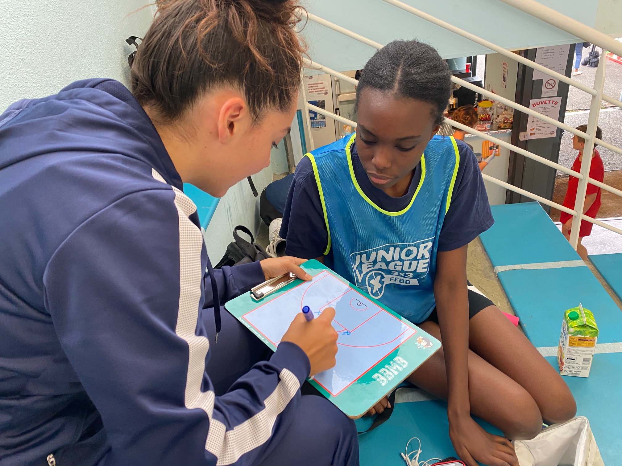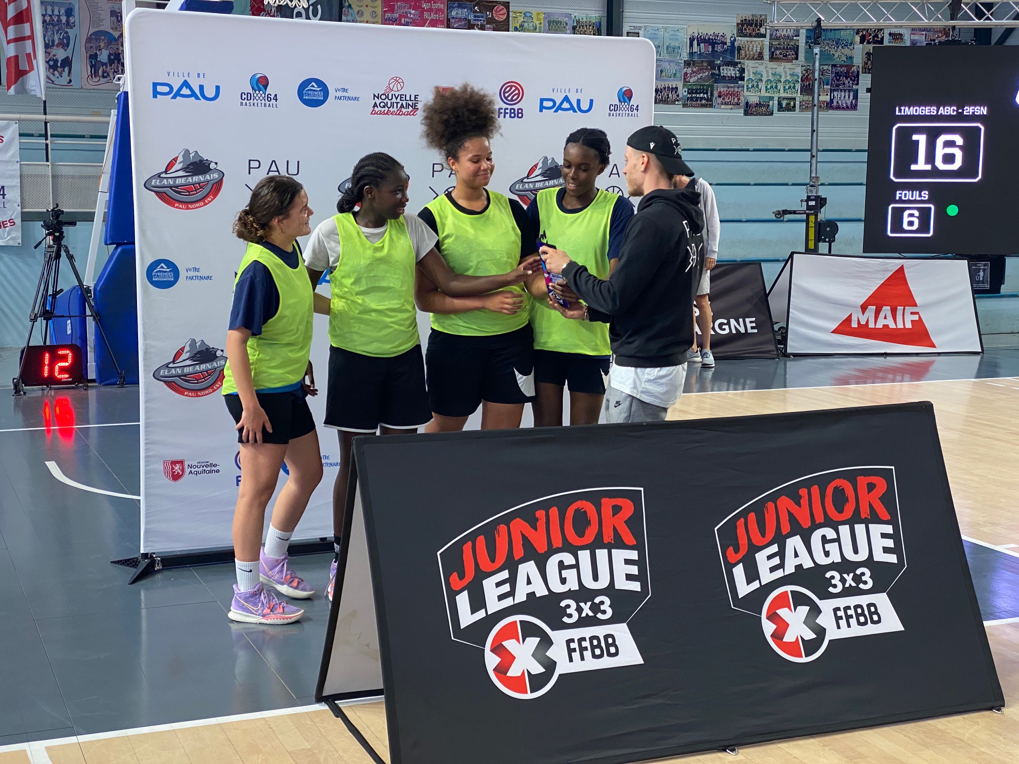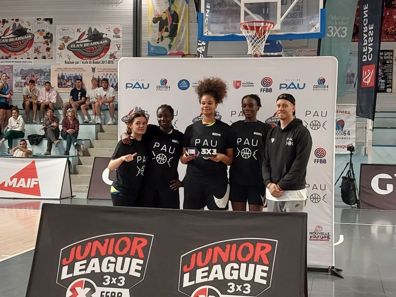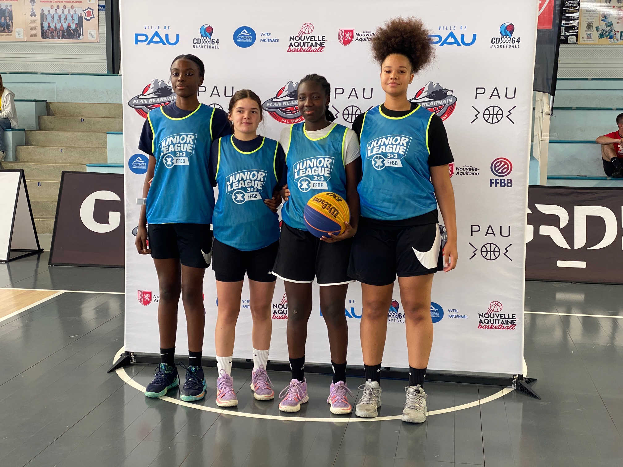 🥁 Les joueuses : Fate, Floria, Klara et Noa (+ Soraya, blessée). Avec Ludivine Guegand, responsable du Pôle 3×3.