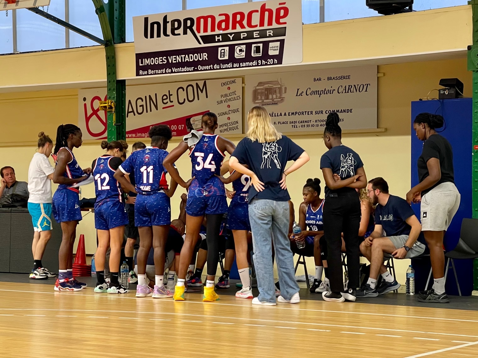 Limoges ABC en Limousin : Nkodia, Mavuanga, Irabe, Peytour, Breuil, Sall, Semavoine, Puc, Kiluangu, Diouf (sans Zahra Wajih et Caroline Deroo toujours indisponibles)