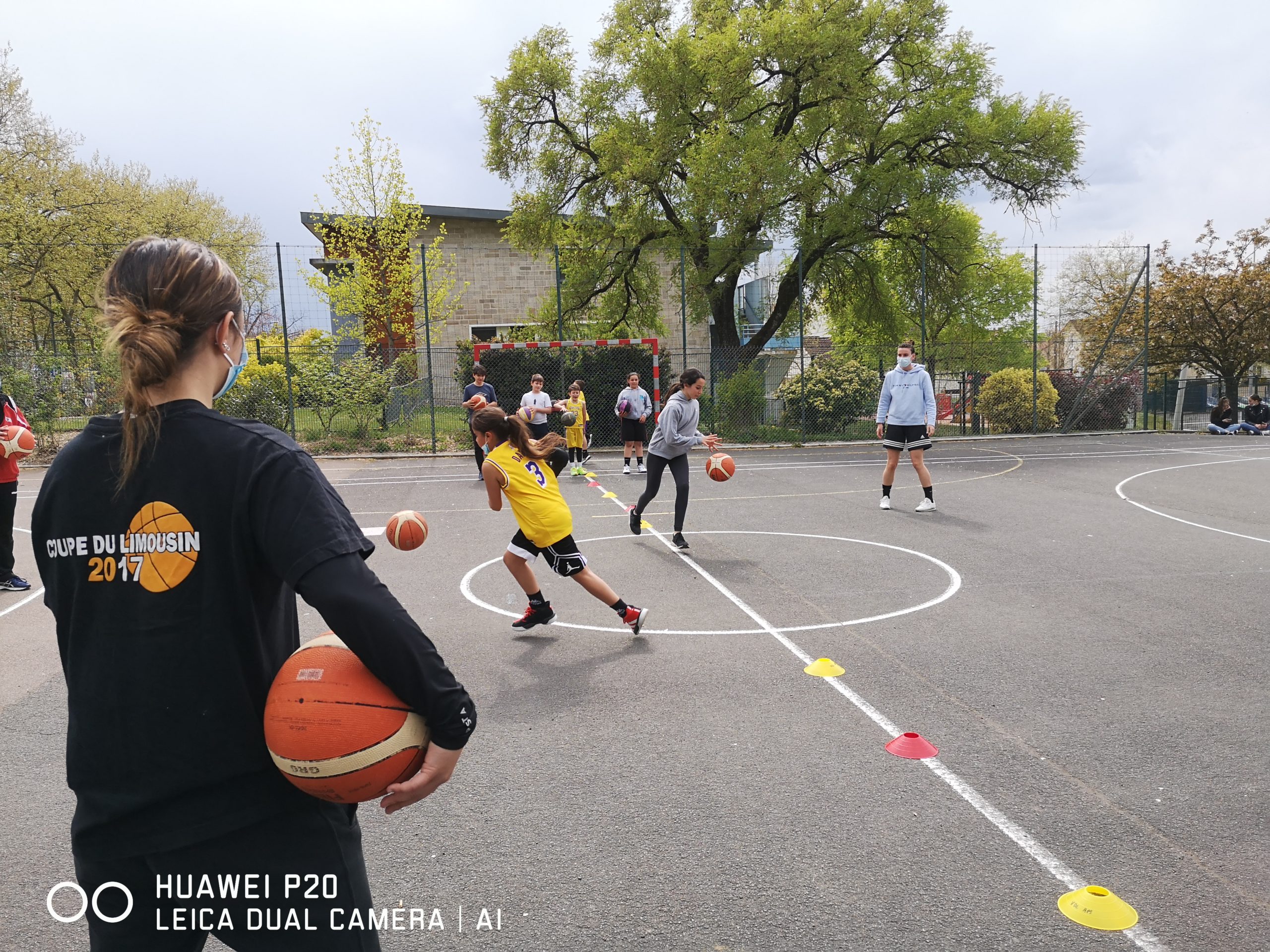 Les contraintes sanitaires nous bloquent et nous empêchent d’être en gymnase et de pratiquer le basket en opposition ou en compétition. Mais qu’à cela ne tienne ! Nous investissons les Play Ground, Beaublanc, Chéops, Le Sablard, les bords de Vienne, partout où le sport peut trouver une petite place. Dans le respect des contraintes sanitaires, sans opposition et en gardant les limites de public accueilli. Exemple aujourd’hui mardi où nous étions présents à la fois aux Portes-Ferrées (Quartiers Solidaires) et à Beaublanc (Sportez-vous bien). Avec Romain (coach), Ludivine et Maya d’une part. Avec Marie-Lys et Justine d’autre part pour les Sportez-vous bien puis demain Khady et Oumi et ainsi jusqu’à la fin de semaine !