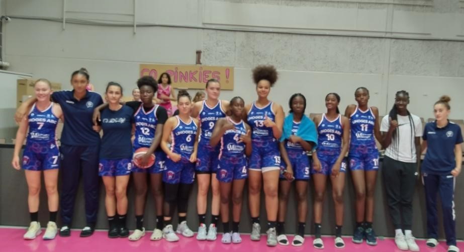 Limoges ABC en Limousin. Les joueuses : Akcan, Adgnot, Lahaye Goncalves, Roume, Mendy, Diakhite, Sall F., Konate, Tchakouteu, MPompa. Et trois partenaires : Adamski, Sacile, Sall A. Les coaches : Corentin Le Pan, Paul Brouste (absent ce we), David Ducher.